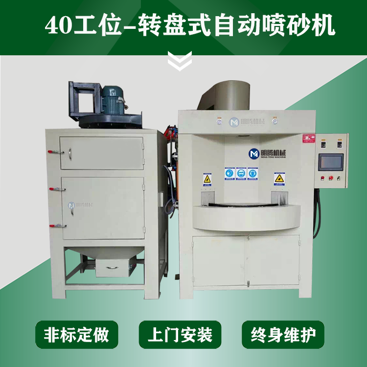 加工效率:以贵公司产品为样件喷砂,大转盘90度间歇运转,小转盘电机驱动喷砂室内的小转盘运转,理论上40秒大转盘完成四次间歇自转,可喷砂8只零件,效率为5秒钟可完成一次零件的喷砂处理。